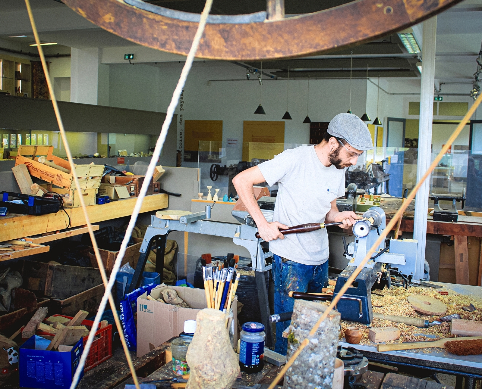 Voyez comme le tourneur dégrossit, affûte, taille, évide, polit le bois et comment sous ses doigts un simple morceau de bois se transforme en un objet unique. Captivant ! Vous pourrez échanger avec le tourneur, poser vos questions sur la technique ou découvrir plus largement les métiers du bois.